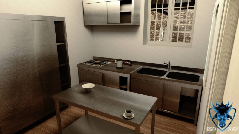 The kitchen is being expanded across to the width of the building and refitted to modern standard.