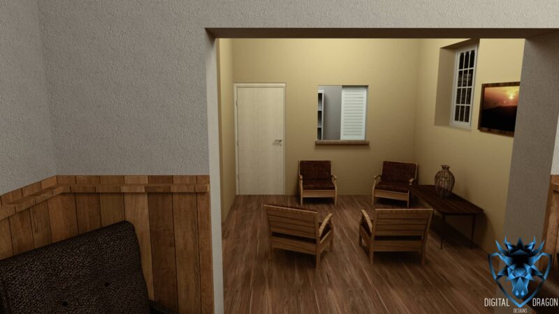 A new wood-framed, glass corridor and entranceway is being added along the outside wall, parallel to the kitchen, such that toilets, hall, meeting room and kitchen can all be accessed separately. The toilets will be reconfigured into three separate toilets off the back foyer (one disabled/baby changing), each with their own sinks.